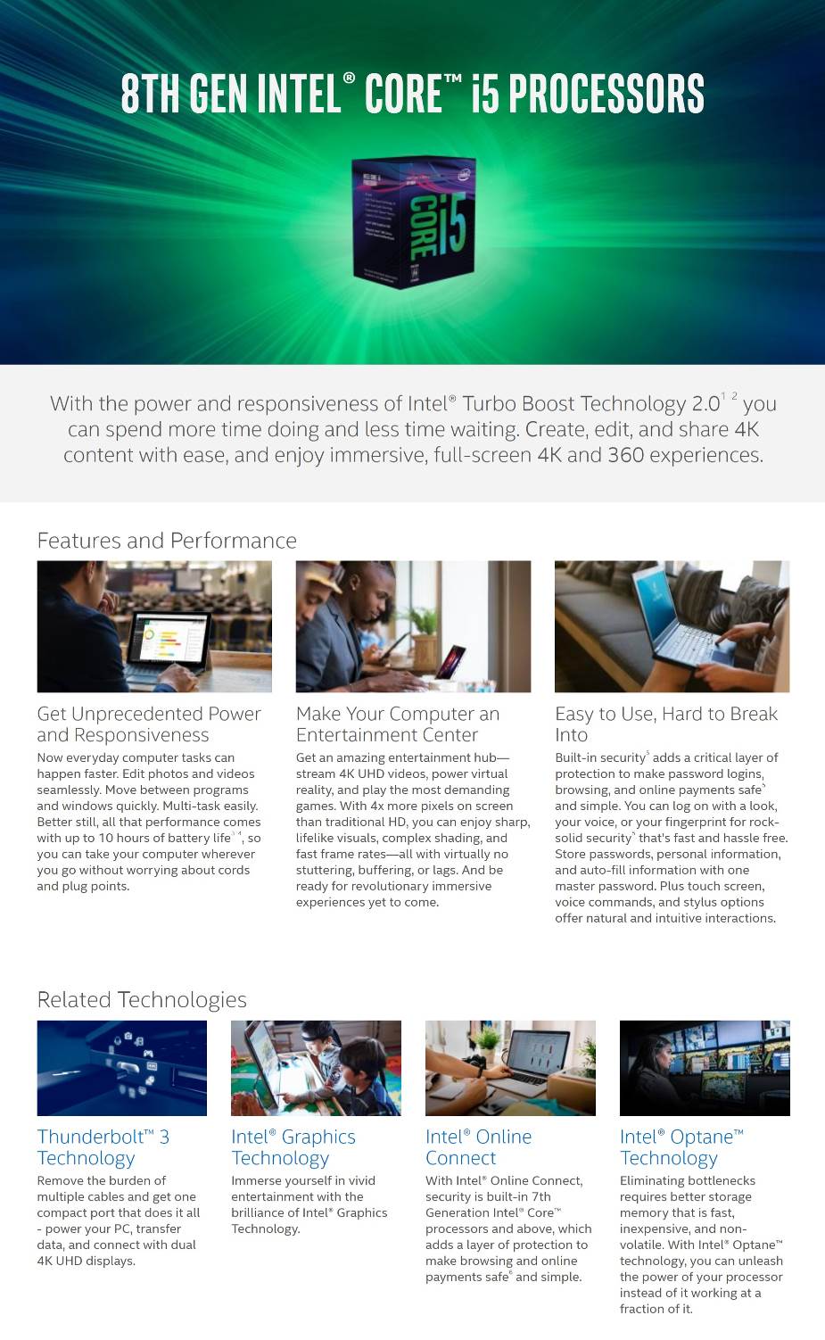 Product Name | Intel Core i5+ 8400 Hex Core LGA 1151-2 2.80 GHz CPU with 16GB Intel Optane |