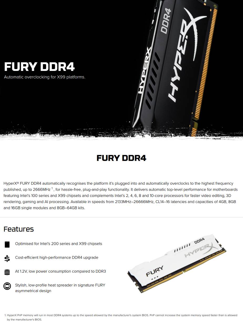 Description Kingston HyperX FURY 16GB (2x 8GB) DDR4 2666MHz Memory White HX426C16FW2K2/16