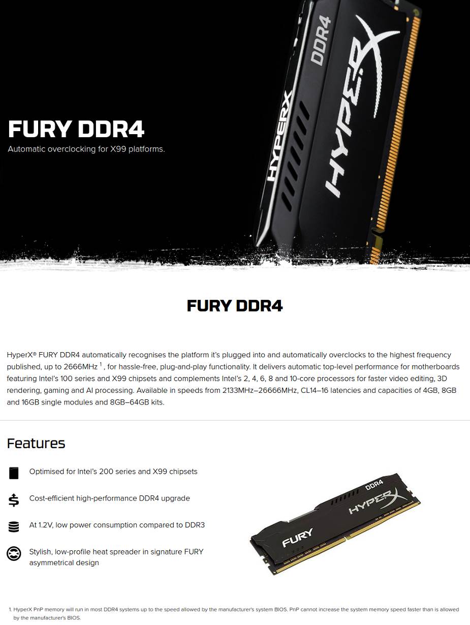 Product Name | Kingston HyperX FURY 32GB (4x 8GB) DDR4 2666MHz Memory Black HX426C16FB2K4/32 |