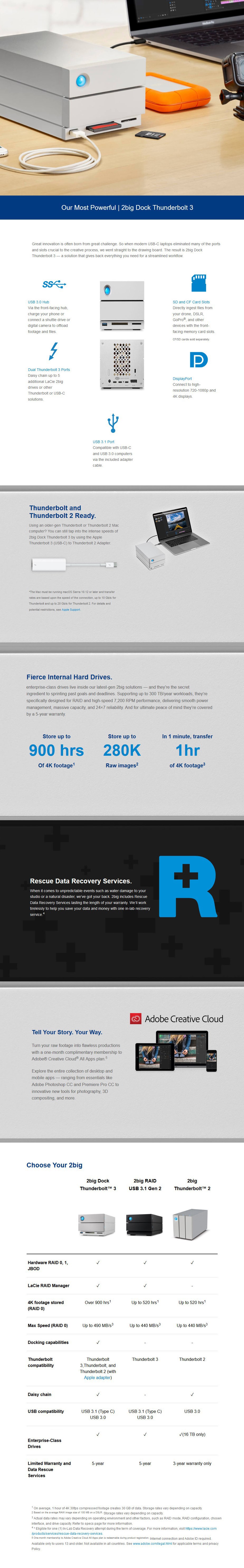LaCie 28TB 2big Dock Thunderbolt3 & USB 3.0 External Desktop Hard Drive - 2x 12TB Hard Drives - Speeds up to 490 MB/s - Dual Thunderbolt 3 Ports - USB 3.0 Hub - SD/CompactFlash Card Slots - DisplayPort - 3 Years Limited Warranty