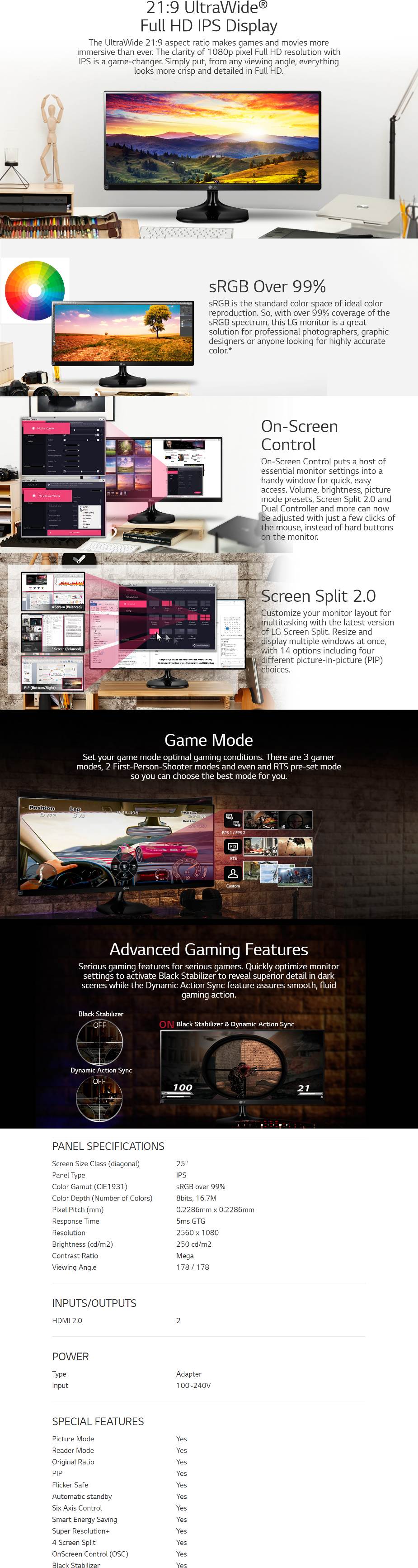Product Name LG 25UM58-P 25" UWHD UltraWide IPS LED Gaming Monitor