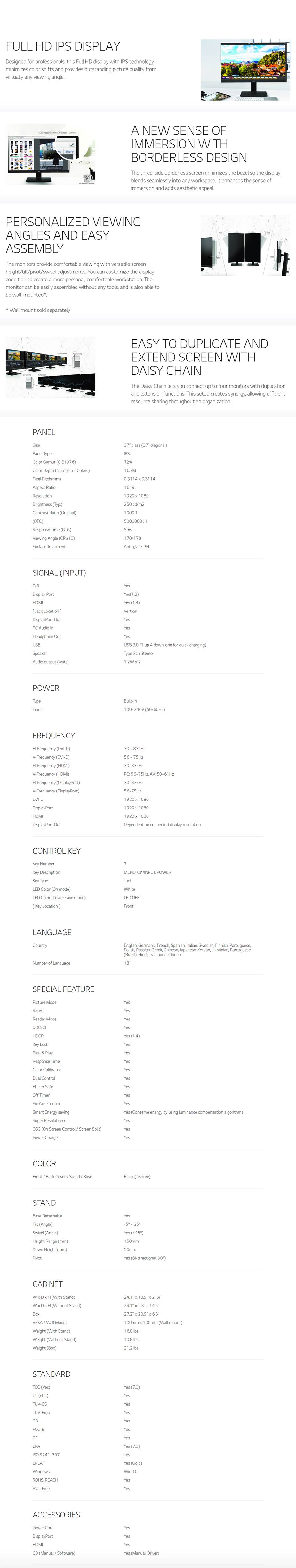 Product Name | LG 27BK750Y-B 27" FHD IPS LED Monitor |