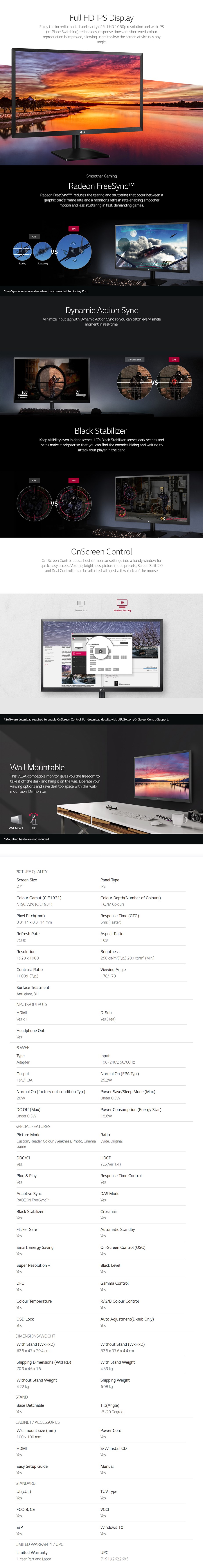 LG 27" Class Full HD IPS LED Monitor with Radeon FreeSync™