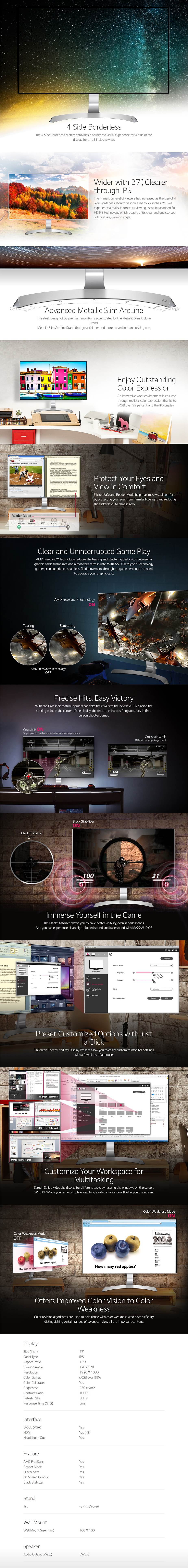 Product Name | LG 27MP89HM-S 27" sRGB Over 99% Colour Calibrated Borderless IPS Monitor |