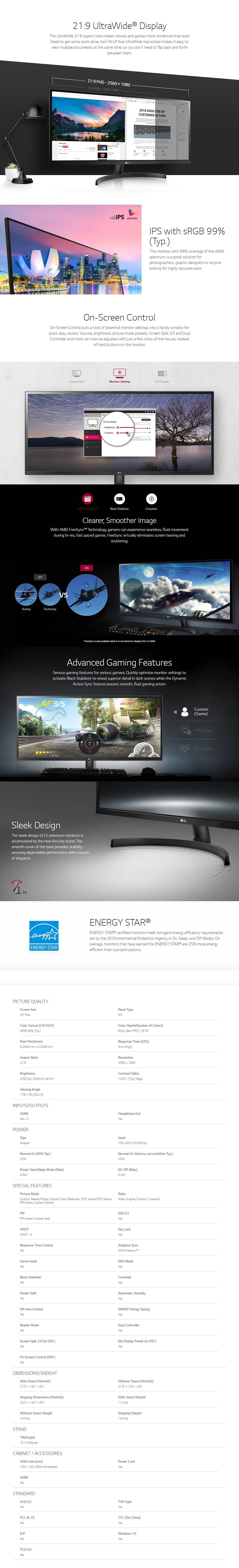 Product Name | LG 29WK500-P 29" UWHD sRGB 99% FreeSync IPS LED Monitor |