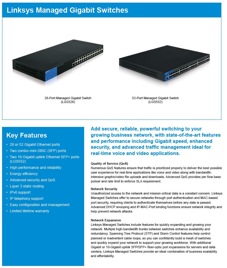 Product Name | Linksys LGS552 52-Port Managed Gigabit Switch |