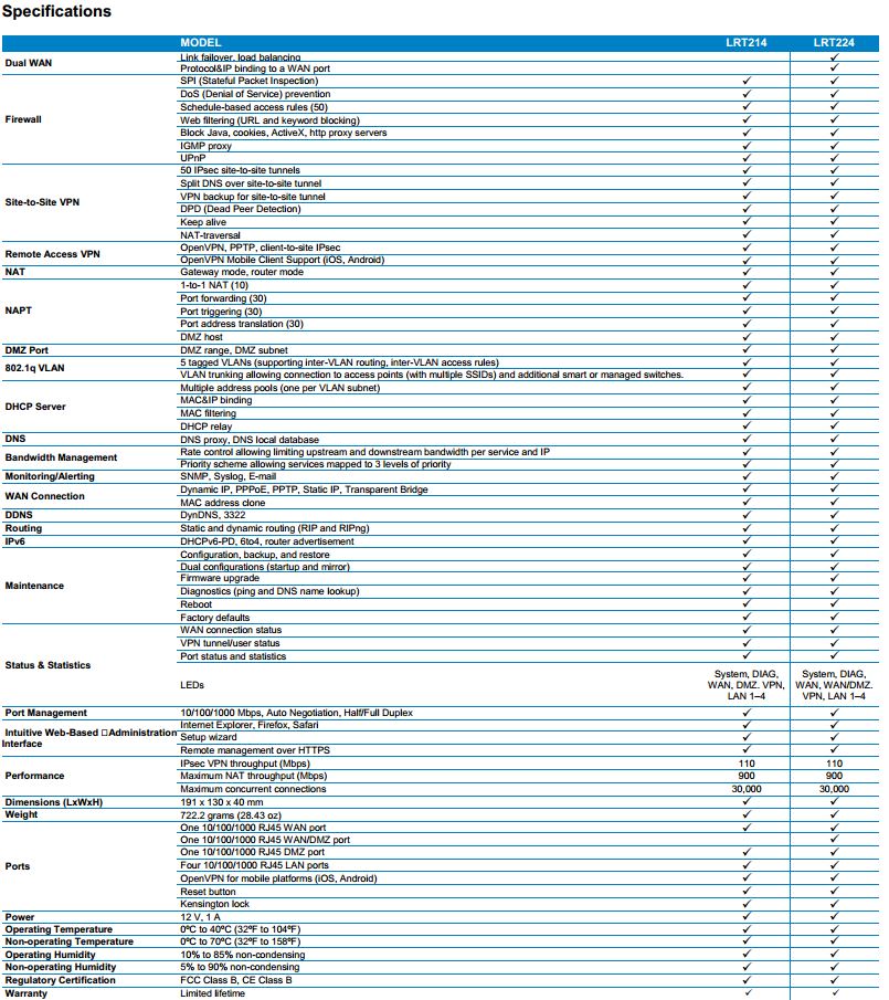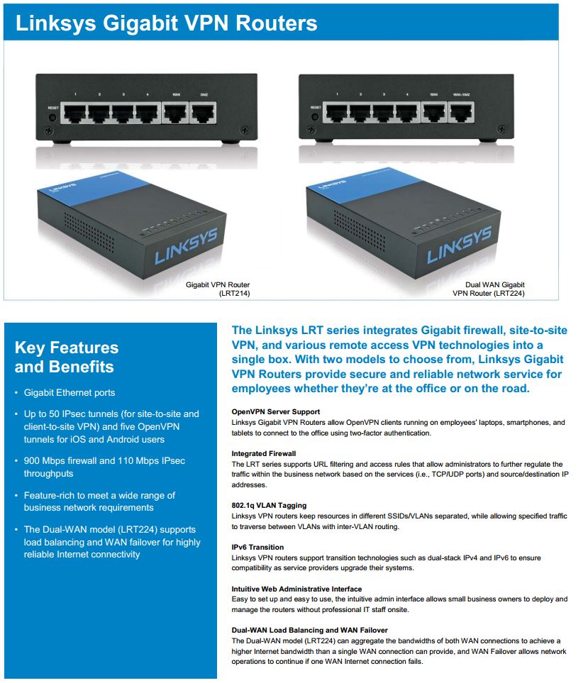 Product Name | Linksys LRT224 Gigabit Dual-WAN VPN Router |