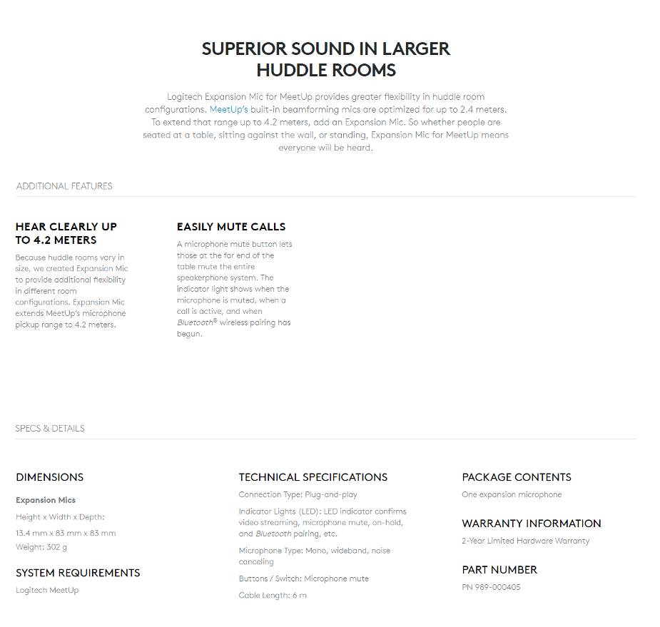 Description Logitech 989-000405 Meetup Expansion Microphone - 2yr Wty