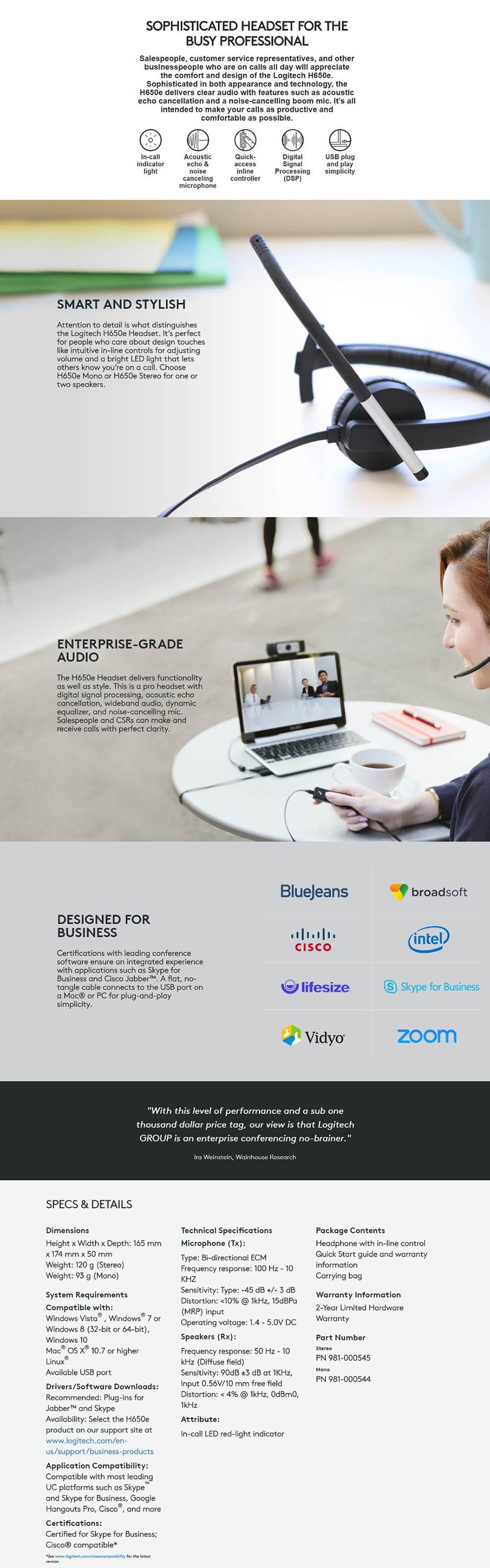 Product Name | Logitech H650E On-Ear Mono Headset |