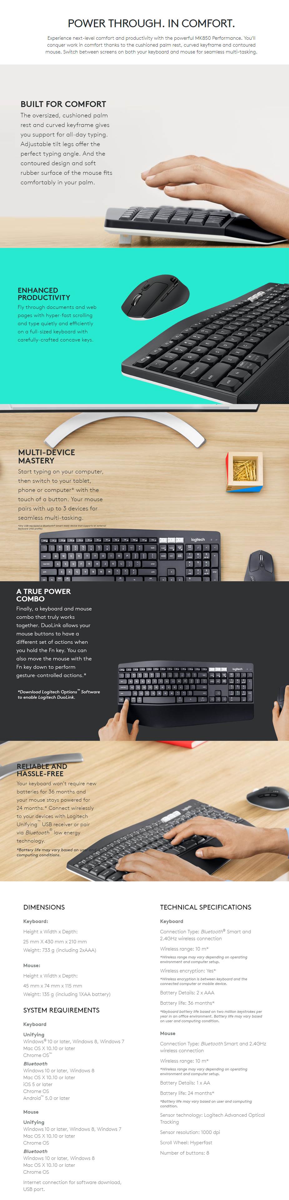 Product Name | Logitech MK850 Performance Wireless Keyboard and Mouse 920-008233 |