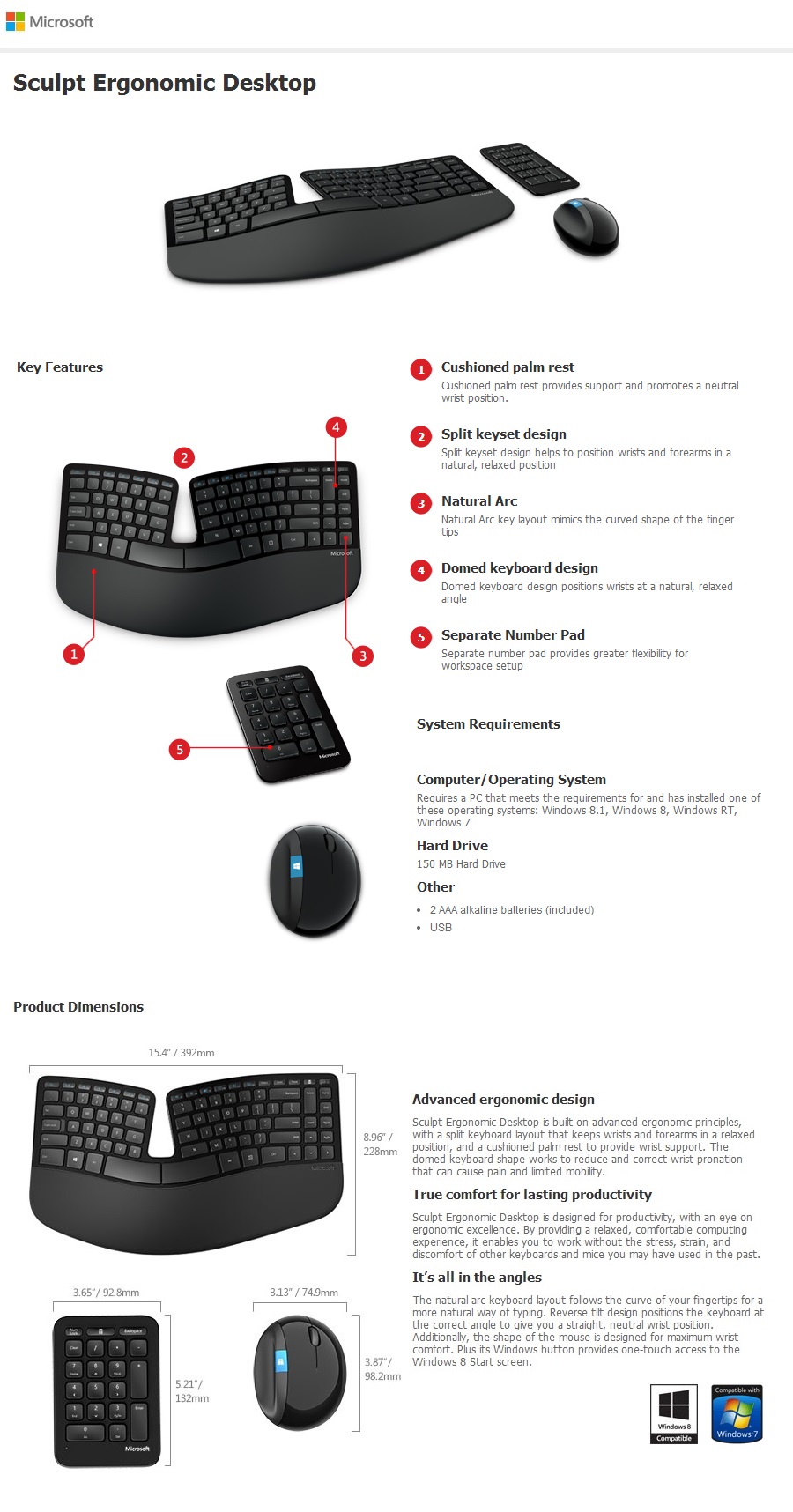 Description Microsoft Sculpt Ergonomic (Ergo) Desktop Mice & Keyboard Combo