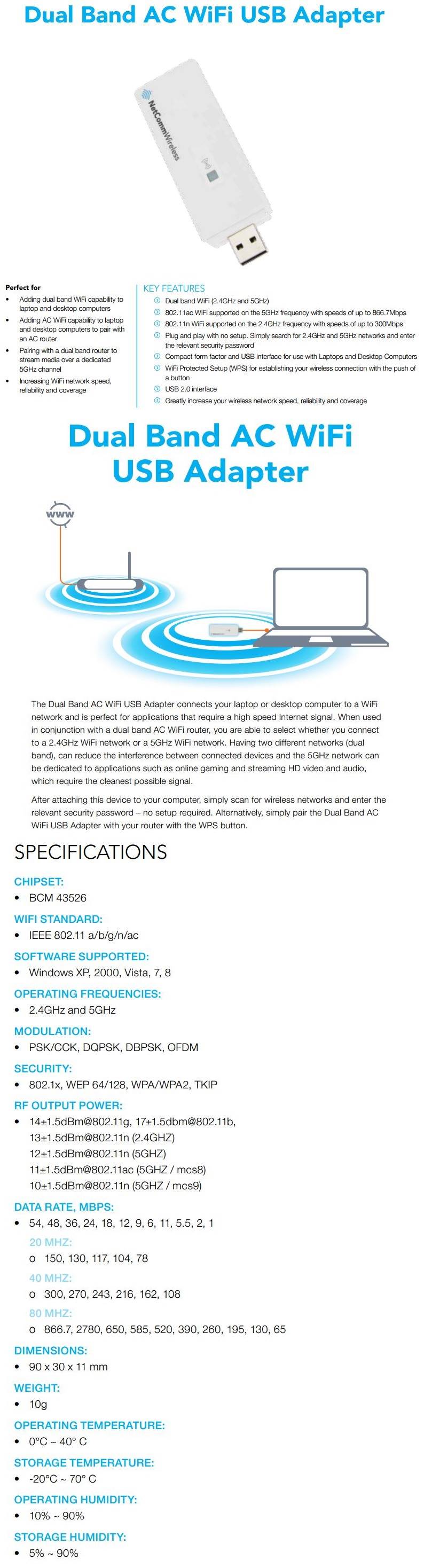 Product Name | Netcomm NP930 AC Dual Band Wifi USB Adapter |
