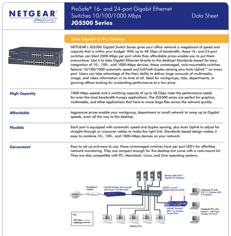 Product Name Netgear JGS524 Prosafe 24 Port Gigabit Ethernet Switch