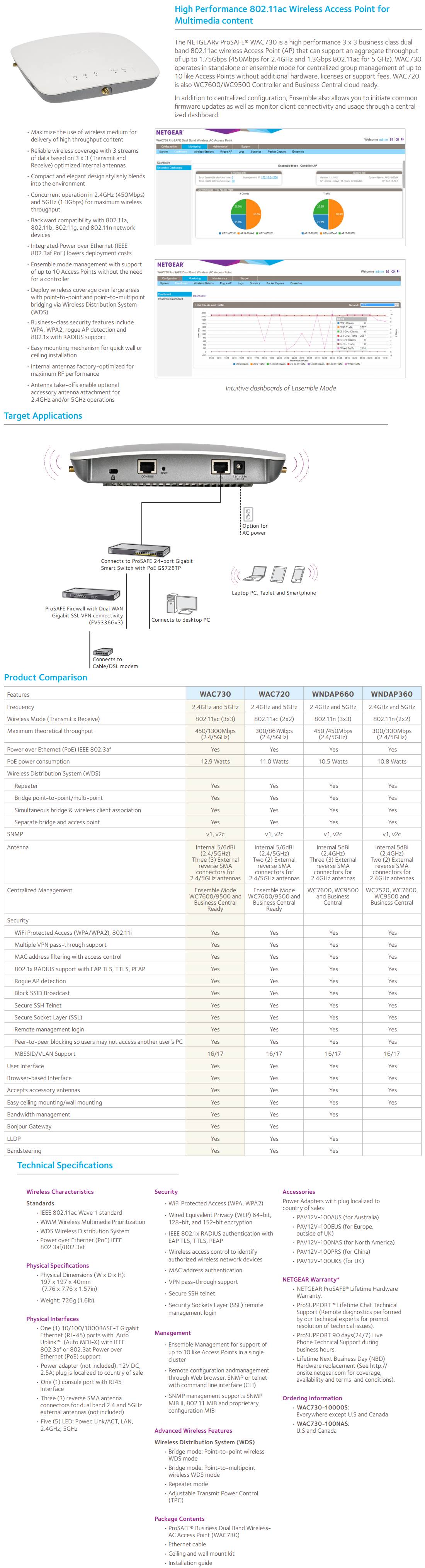 Product Name | NETGEAR WAC730 ProSAFE Wireless AC Access Point |
