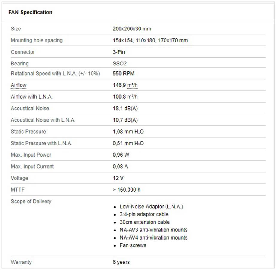 Product Name | Noctua NF-A20 200mm FLX 800RPM Fan |