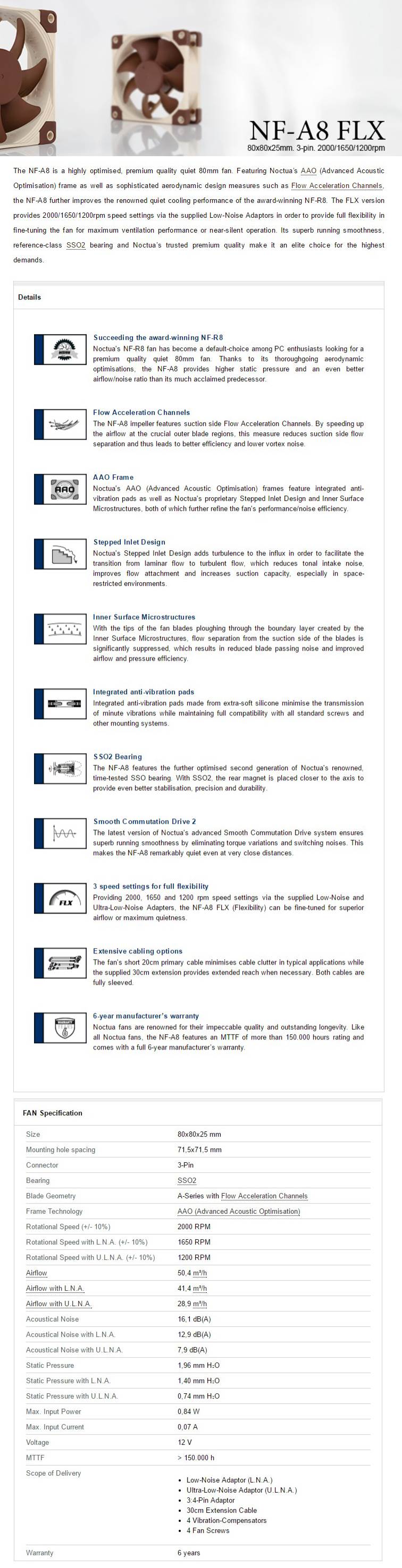 Product Name | Noctua NF-A8 80mm FLX 2000RPM Fan |