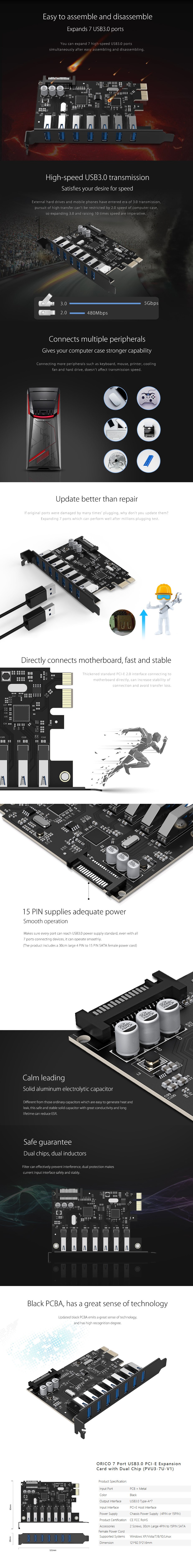 Product Name | Orico 7-Port USB3.0 PCI-E Expansion Card PVU3-7U-V1 |