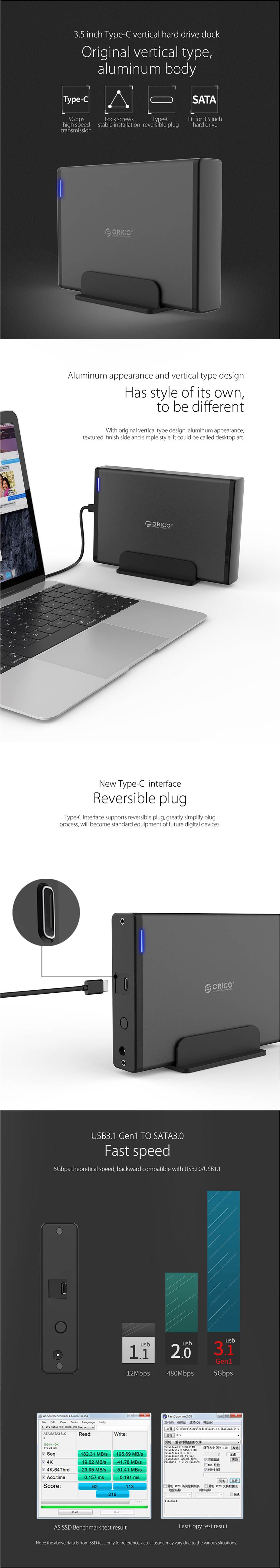 3.5" Orico USB Type-C External Hard Drive Enclosure, Windows/Mac/Linux