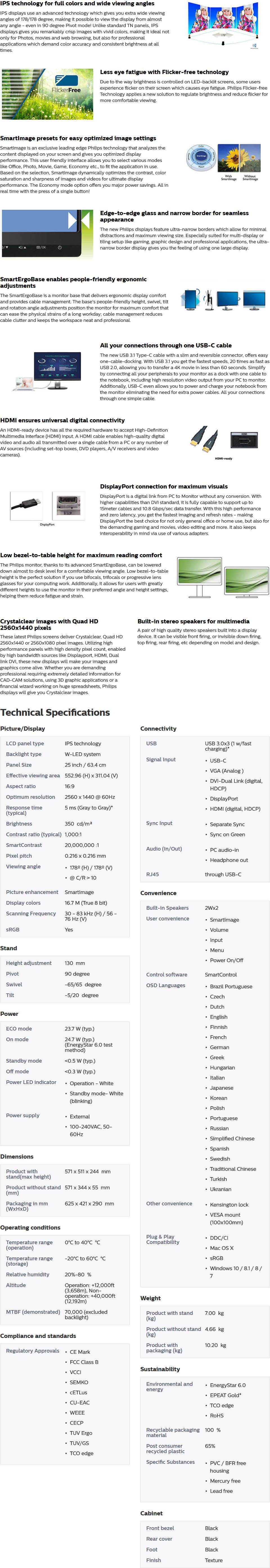 Product Name | Philips 258B6QUEB 25" WQHD IPS W-LED LCD Monitor |