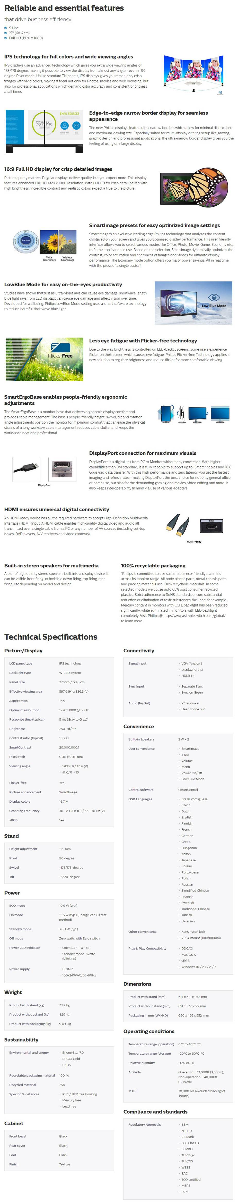 Product Name | Philips 271S7QJMB 27" FHD IPS LED Monitor |