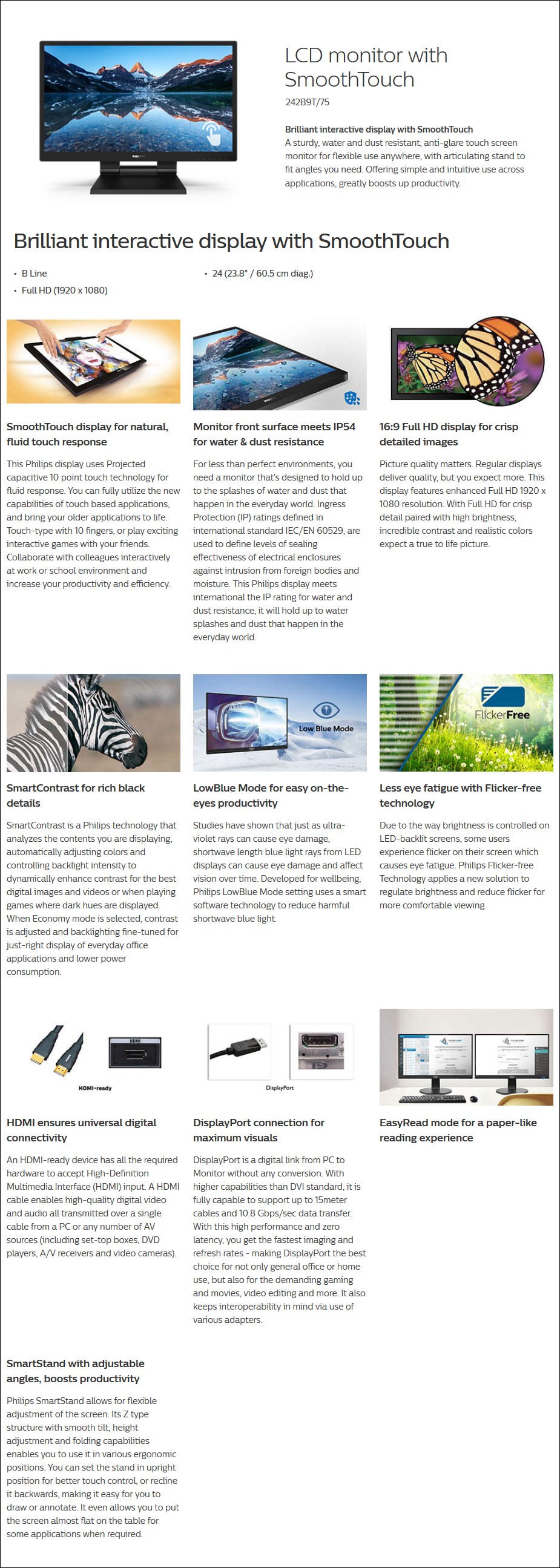 Product Name Philips B-Line 242B9T/75 23.8" Full HD SmoothTouch IPS Monitor 242B9T