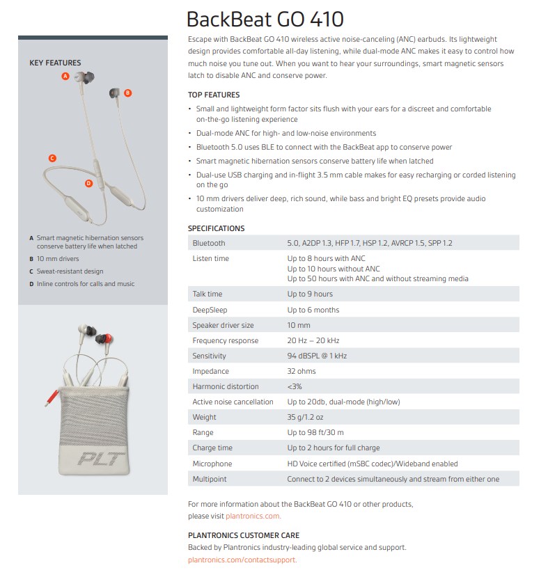 Product Name Plantronics BackBeat GO 410 Wireless Headphones 212079-99
