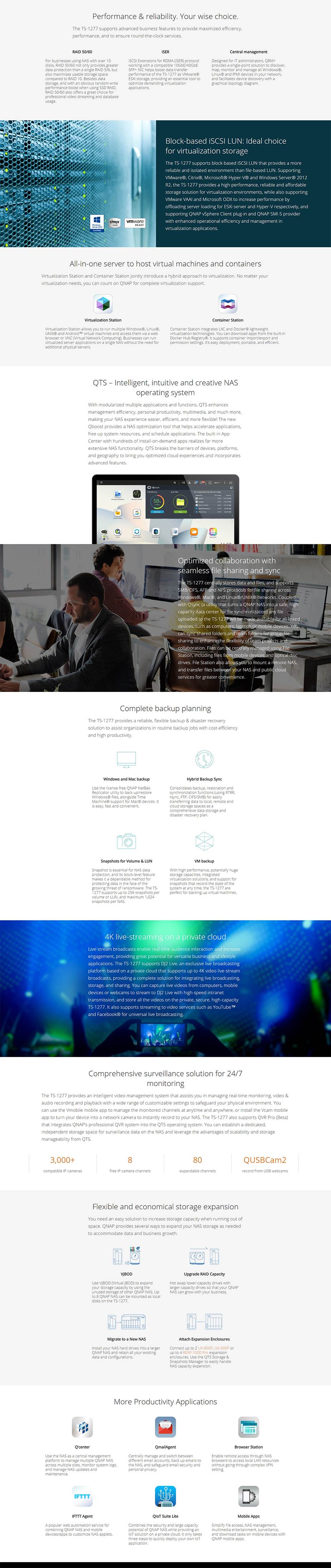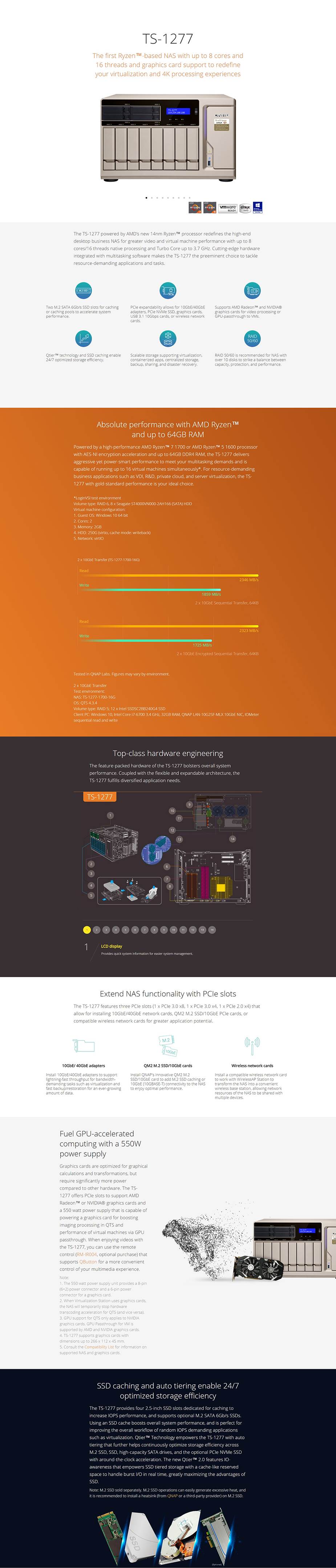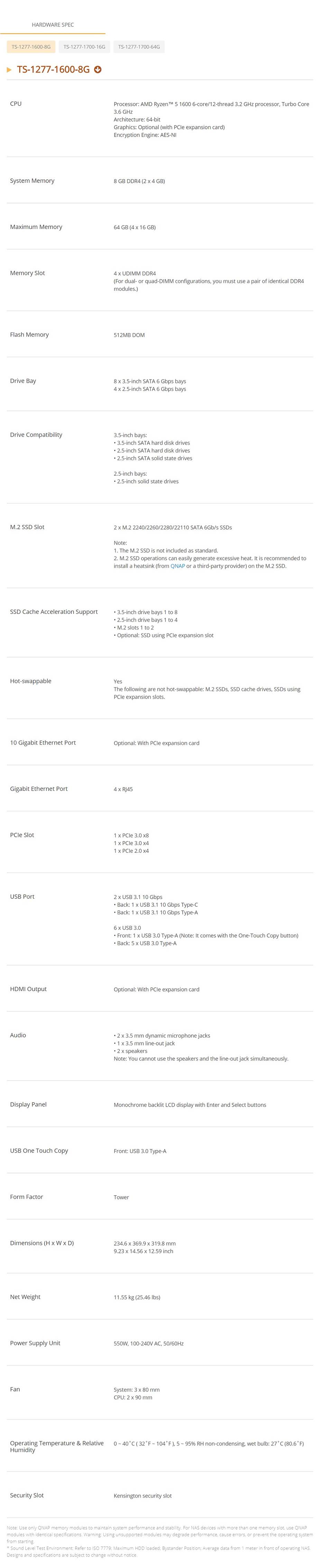 Product Name | QNAP TS-1277-1600-8G 12 Bay Diskless NAS AMD Ryzen 5 1600 CPU 8GB RAM |