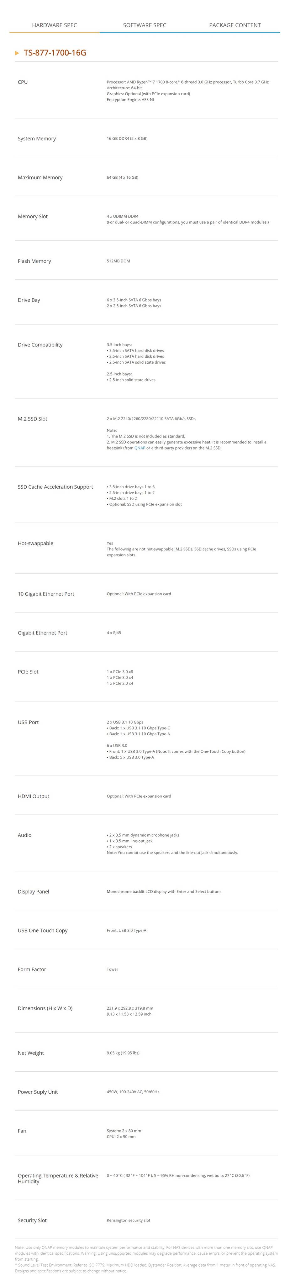 Product Name QNAP TS-877-1700-16G 8-Bay Diskless NAS - AMD Ryzen 7 1700 8-Core CPU 16GB