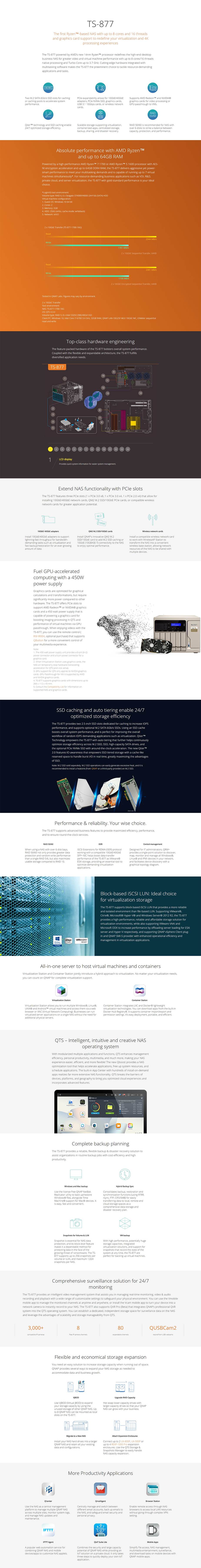 Description QNAP TS-877-1700-16G 8-Bay Diskless NAS - AMD Ryzen 7 1700 8-Core CPU 16GB