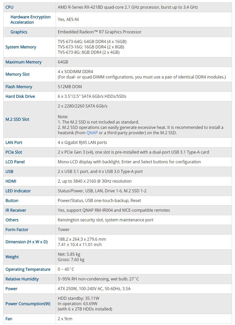 Product Name | Qnap TVS-673e-4G 6-bay Nas, Amd Rx-421bd 2.1~3.4 Ghz, 4gb Ddr4 Ram (max 64gb) NAS |
