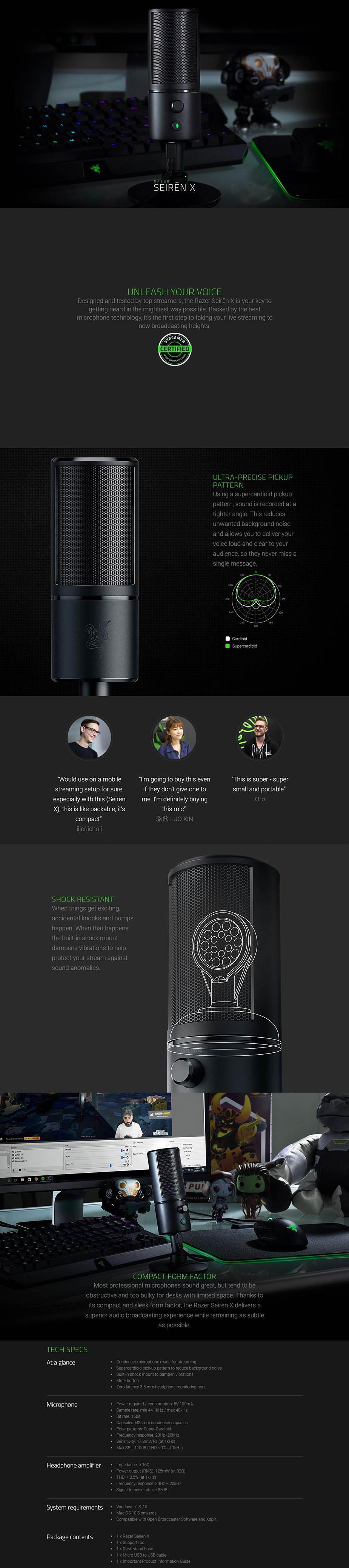 Description Razer RZ19-02290100-R3M1 Seiren X Cardioid Condenser Desktop Microphone