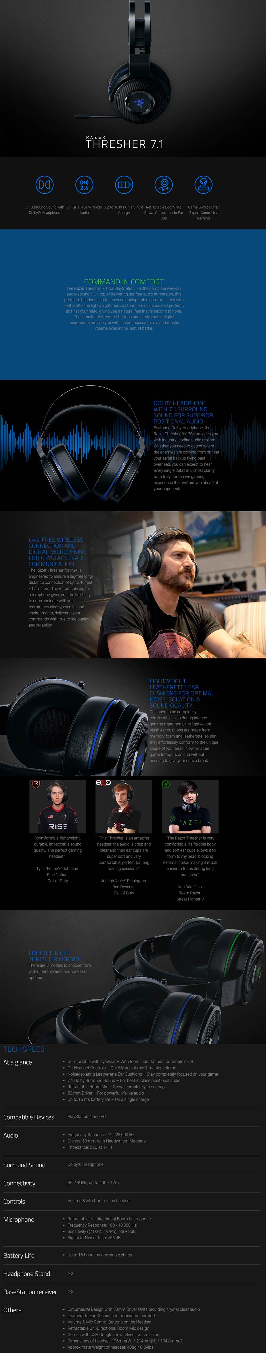 Product Name | Razer Thresher 7.1 PS4/PC Wireless Headset RZ04-02230100 |
