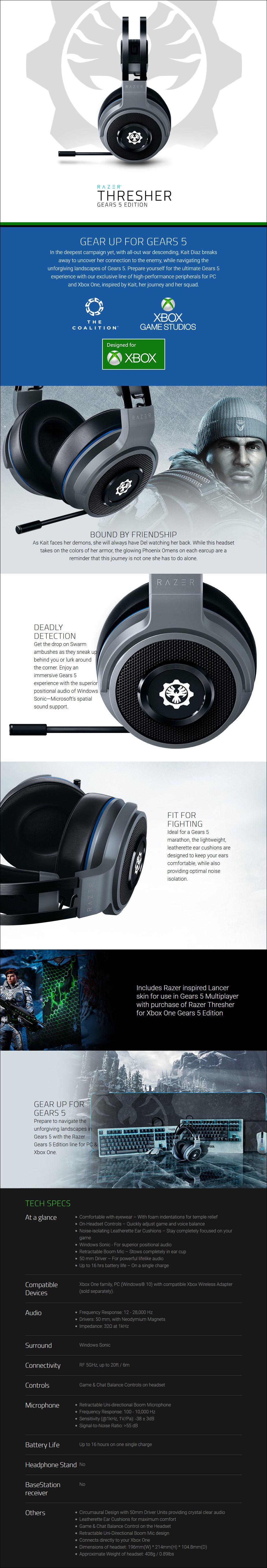 Product Name | Razer Thresher XB1/PC Wireless Gaming Headset - Gears 5 Edition RZ04-02240200 |