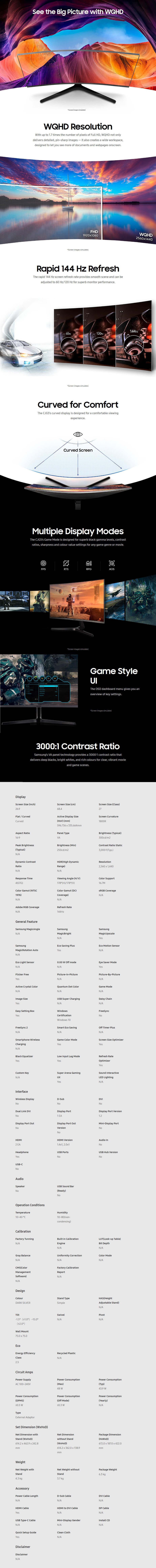 Product Name | Samsung CJG5 27" 144Hz WQHD VA Curved Gaming Monitor LC27JG50QQEXXY |