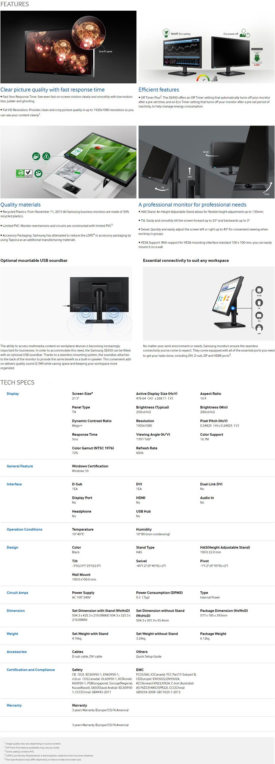 Product Name | Samsung LS22E45KBSV/XY 21.5" FHD LCD Monitor |