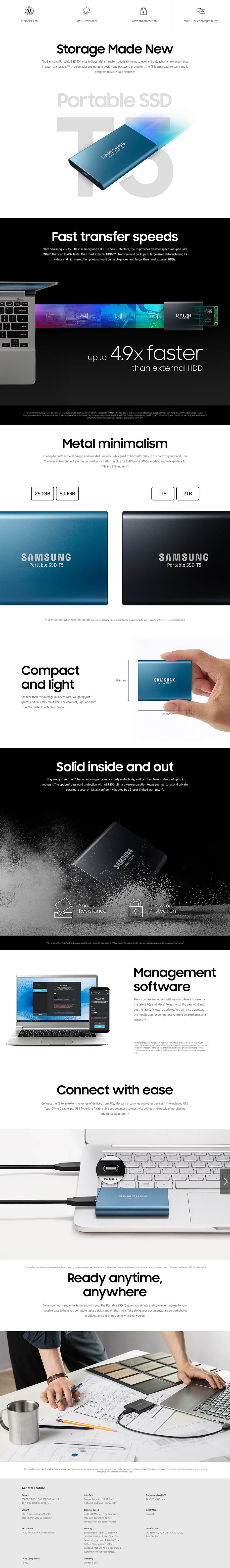 Description Samsung Mu-pa250b/ww 250gb T5 Portable Ssd Usb 3.1 Type-c Blu