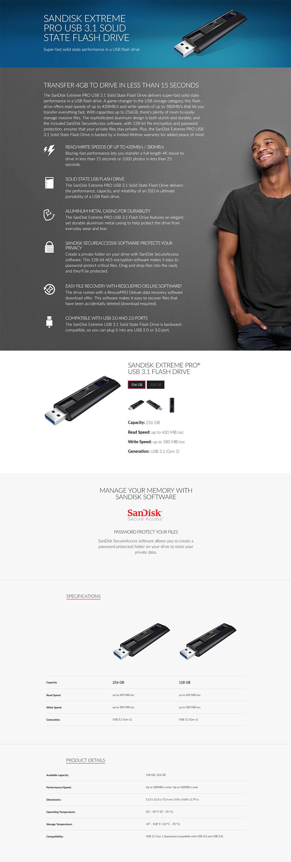 Product Name | SanDisk 256GB Extreme Pro USB 3.1 Solid State SDCZ880-256G |