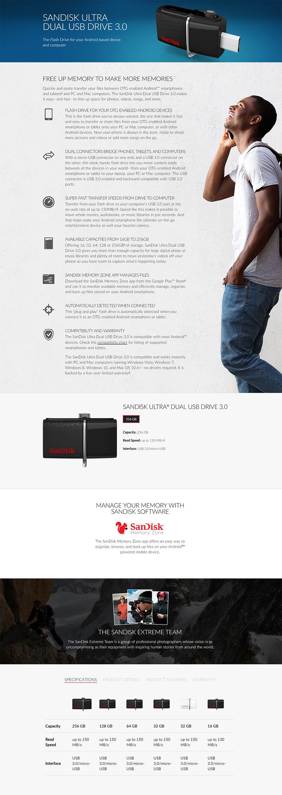 Description SanDisk 256GB Ultra Dual USB Drive 3.0 SDDD2-256G
