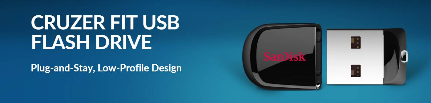 FOR “INVISIBLE” EXTRA STORAGE AND QUICK FILE TRANSFER With its advanced data security options and spacious capacity, the Cruzer Fit USB Flash Drive gives you a secure, easy way to transfer your personal files. This USB drive features a convenient low-profile design that's ideal for situations where a full-size USB drive is just too big, such as use with a TV or car audio device. The Cruzer Fit USB also connects easily to computers and tablets. LOW-PROFILE FOR EASY CONNECTIONS The drive's low-profile design allows it to easily connect to any USB device. Connect it to hard-to-access TV USB ports for HD video play back or bring your music library to your car via the USB port on your vehicle's audio system. The Flash Drive comes with a protective cap, which shields the USB connector from damage when not in use. HIGH-CAPACITY DRIVE HOLDS MUSIC, VIDEO, PHOTOS, AND PERSONAL FILES Despite its compact size, the Cruzer Fit USB Flash Drive packs enough capacity for your favorite files and your most critical personal data. Available in capacities from 8GB to 64GB, the drive can accommodate photos, songs, and whatever else you need to carry. ADD FILES EASILY WITH DRAG-AND-DROP FILE LOADING It's easy to add files to the Cruzer Fit USB Flash Drive: just plug the USB drive into your computer's USB port and drag your files into the drive's folder. You don't need to download drivers or install software to use it, so you can start storing, transporting, and sharing your data immediately. SANDISK SECUREACCESS SOFTWARE PROTECTS YOUR PRIVATE FILES The Cruzer Fit USB Flash Drive comes with SanDisk SecureAccess, which creates a password-protected private folder on your Flash Drive. With your private files protected with 128-bit AES encryption, you'll be able to share your USB drive without compromising your privacy. |