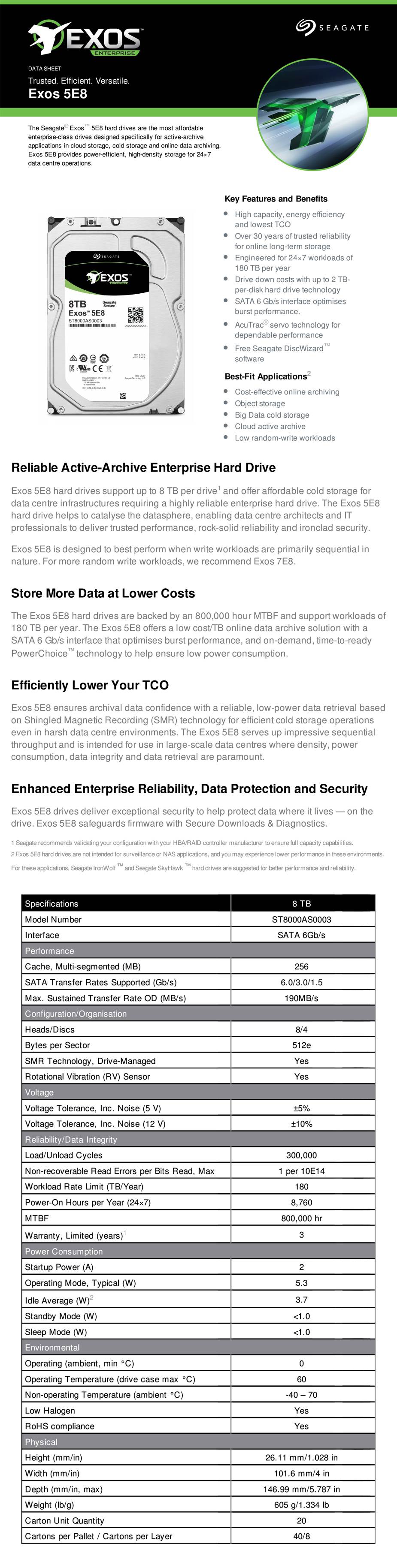 Product Name | Seagate Exos 5E8 8TB 3.5" SATA 6Gb/s Archive HDD |