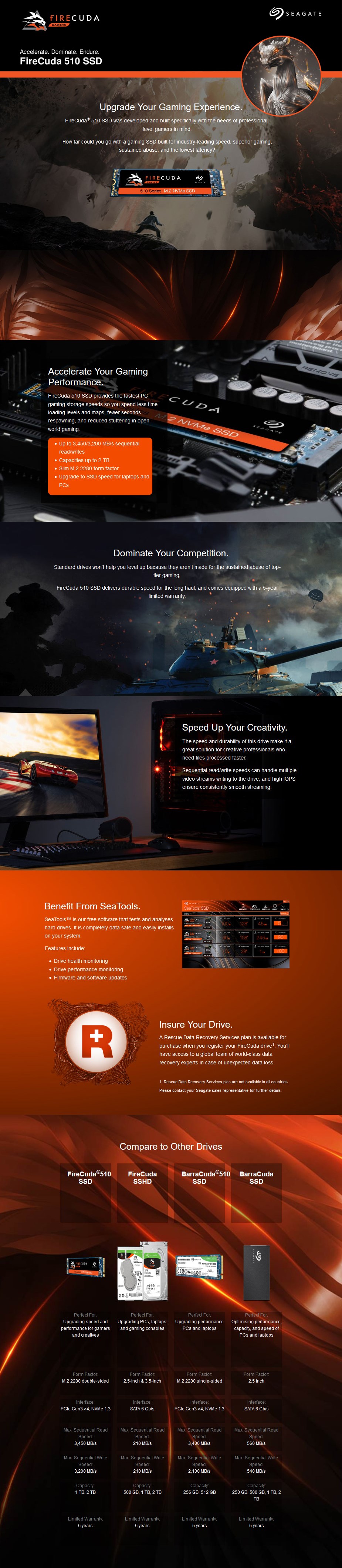 Product Name | Seagate FireCuda 510 1TB NVMe M.2 2280-D2 SSD - ZP1000GM30011 Solid State Drive |