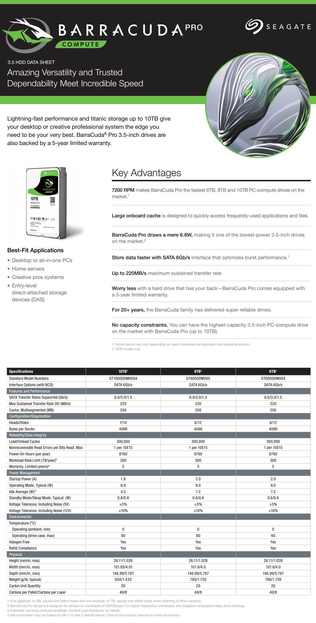 Product Name | Seagate ST4000DM006 4TB BarraCuda PRO 3.5" SATA3 Desktop Hard Drive |