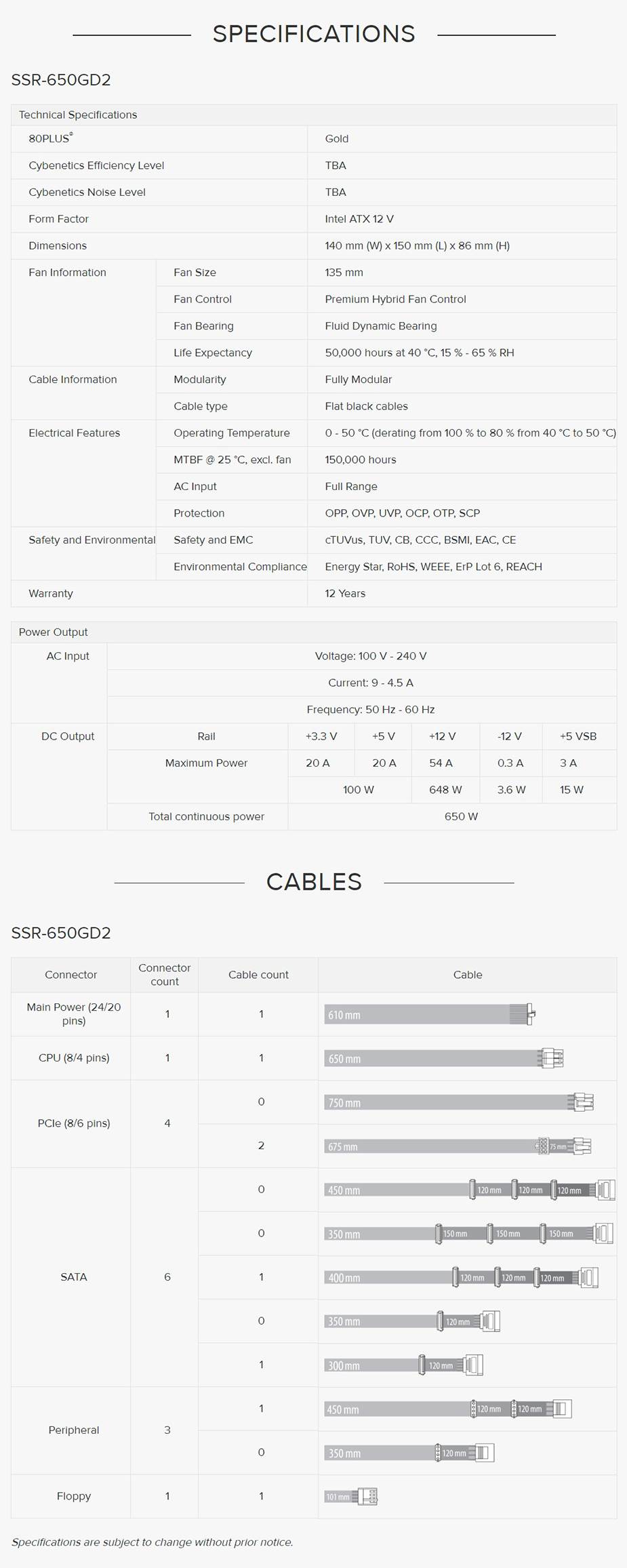 Product Name | Seasonic Prime Ultra 650w 80+ Gold PSU SSR-650GD2 |