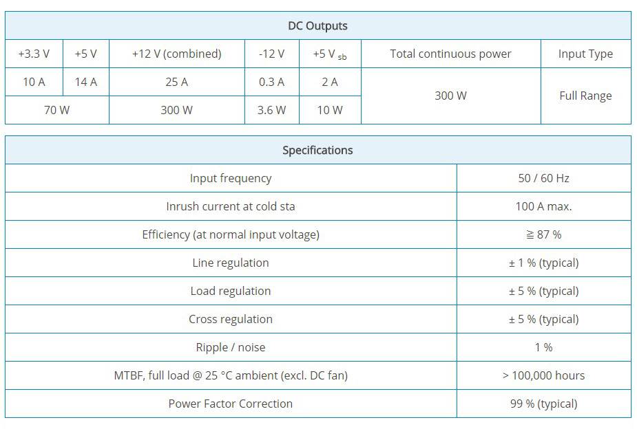 This industrial power supply is TFX 12 V v.2.31 compliant and offers DC to DC converter design and important protection features for safe operations. It is perfect for desktop of mini ITX cases and with its 80 PLUS® Gold rating it can achieve up to 90 % efficiency at 115 V AC at 50 % load. This unit supports the latest Intel and AMD platforms and with above 100,000 hours MTBF rate it is highly reliable.