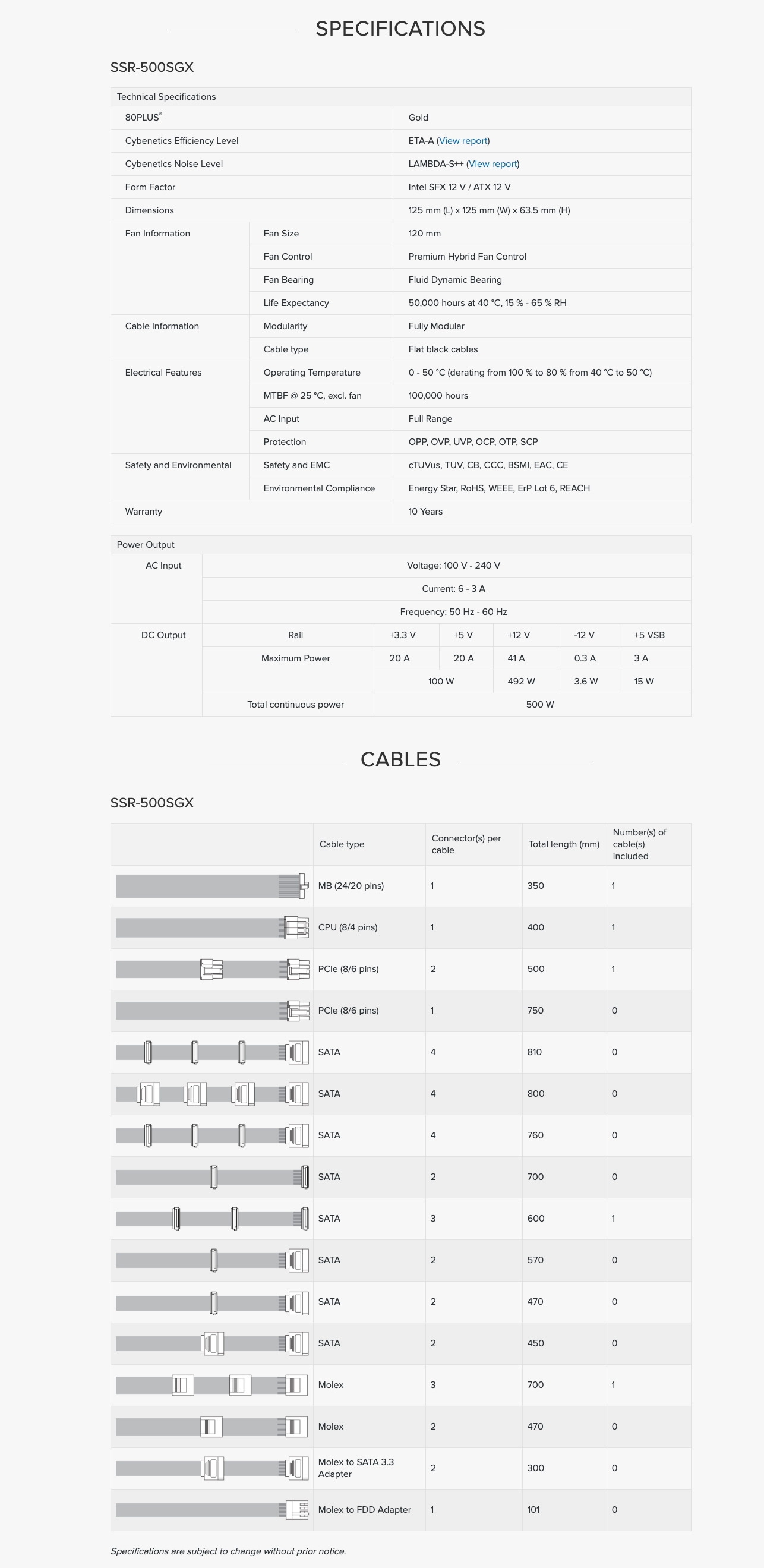 Product Name | Seasonic SSR-500SGX FOCUS 500W 80 PLUS Gold SFX12V Power Supply Unit PSU |