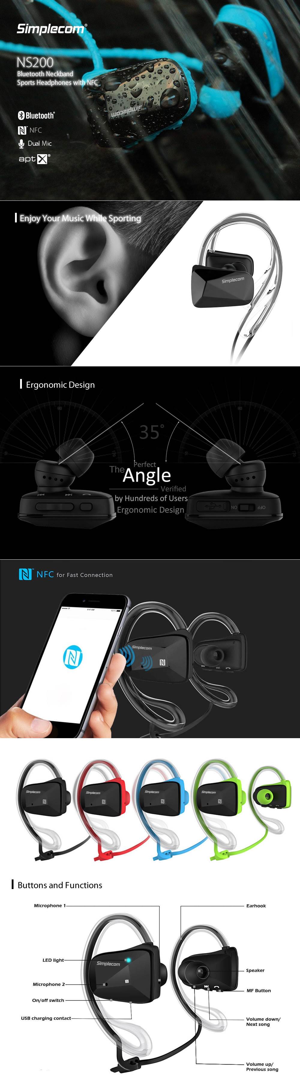 Description Comfort and Secure Fit for Workout Built with flexible, stabilizing ear hooks, Simplecom HS200 is designed to fit anyone comfortably and securely through even the most vigorous physical activity. Thanks to Bluetooth 4.1 technology, advanced in-built NFC and dual microphone design, these Earbuds will leave you free to enjoy your favourite sports without being tethered to your phone. The Simplecom HS200 are durable enough for active wear, yet also comfortable enough for casual wear. They’re sturdily built, sweat-proof and premium sound quality. They’re the perfect accessory for your versatile lifestyle. Features