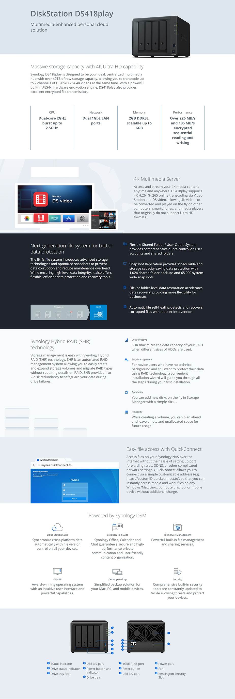 Product Name Synology DS418Play DiskStation 4-Bay NAS