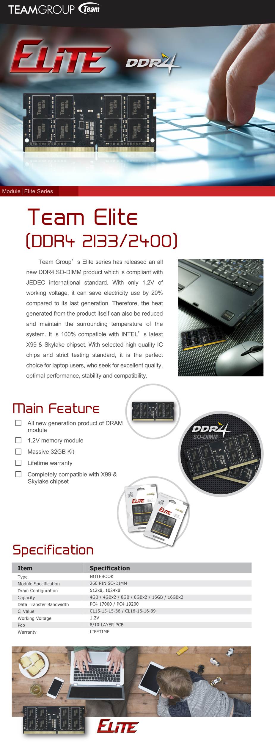 Product Name | Team Elite 8GB (1x 8GB) DDR4 2133MHz SODIMM Memory |