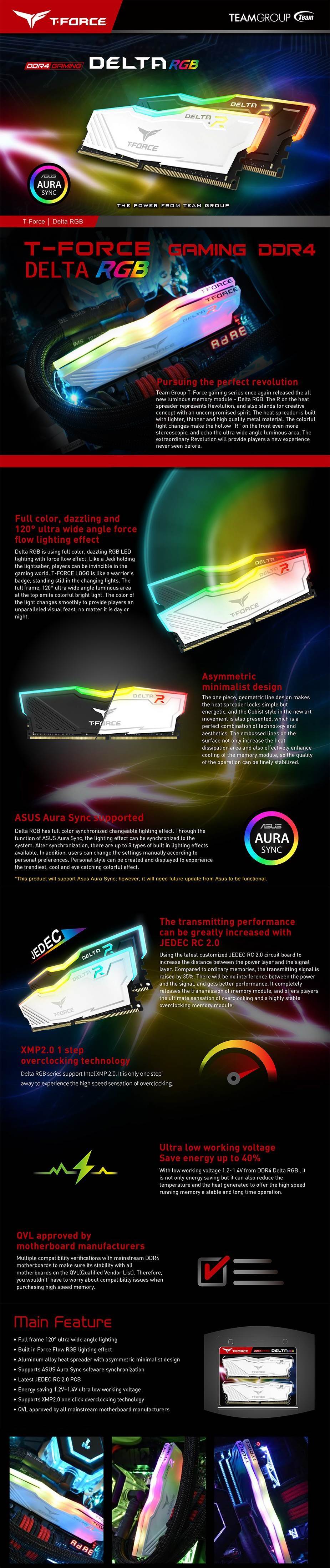 Product Name | Team T-Force Delta RGB Series 32GB (2x16GB) DDR4 3000MHz Memory - Black TF3D432G3000HC16CDC01 |
