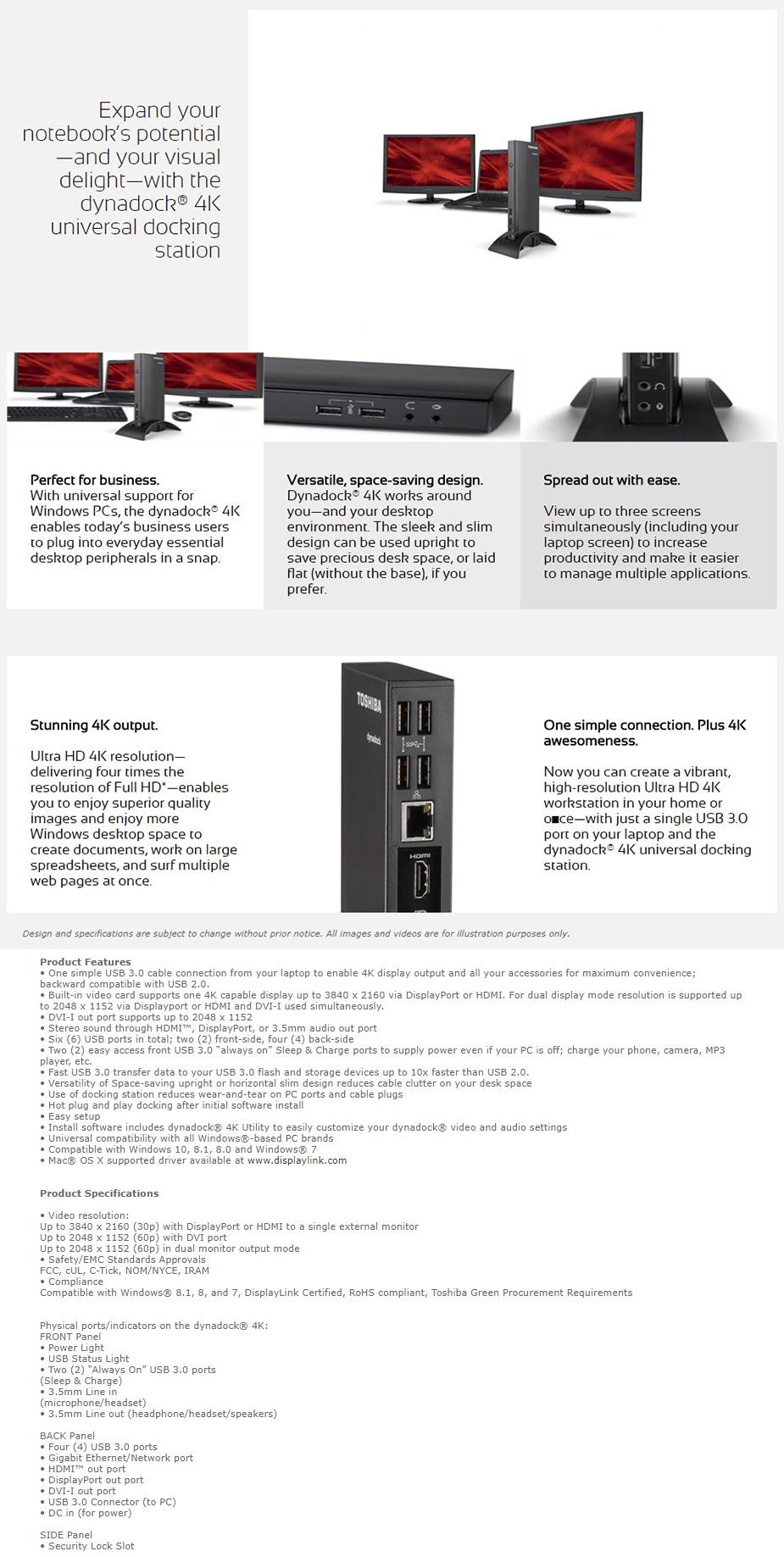 Product Name | Toshiba Dynadock 4K Universal Docking Station PA5217A-1PRP |